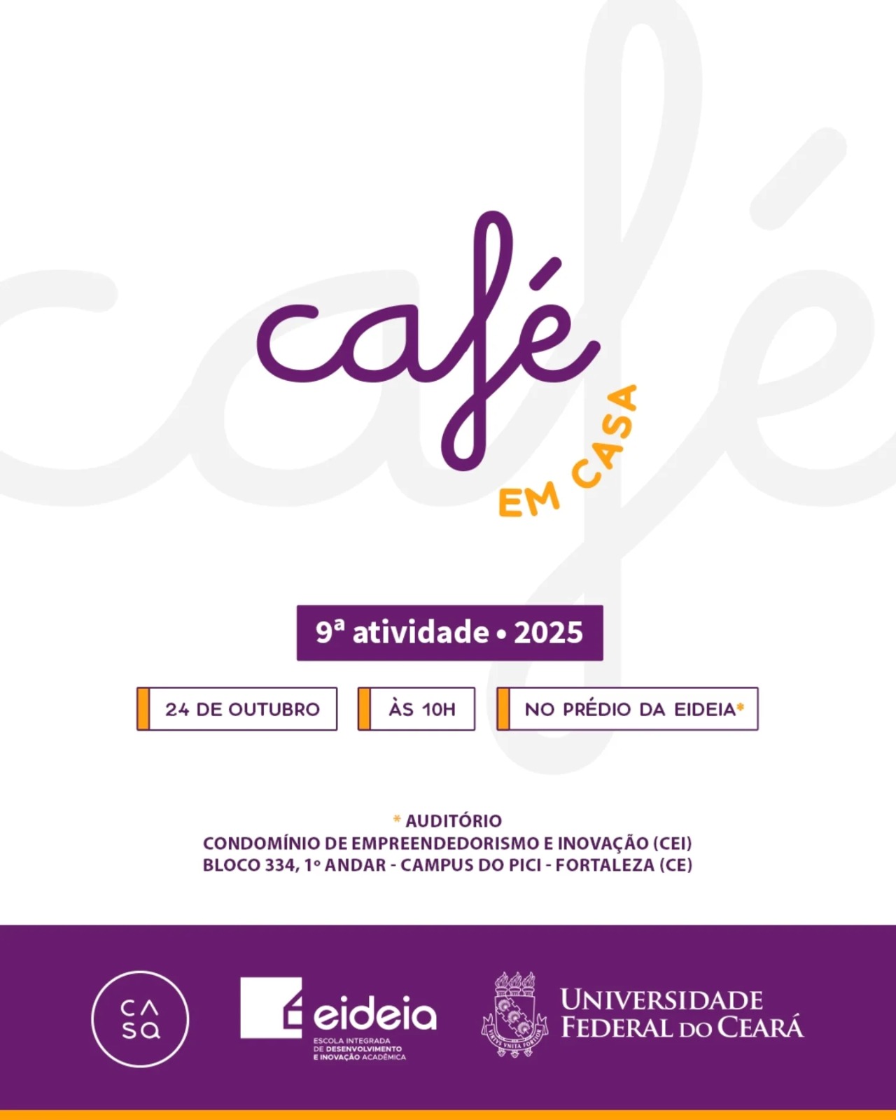 Nesta sexta-feira, 24 de outubro, às 10h, a Escola Integrada de Desenvolvimento e Inovação Acadêmica (Eideia) promoverá a 9ª atividade do Café em CASa em 2025. O evento, aberto ao público, reúne professores para compartilhar diversas abordagens educacionais.