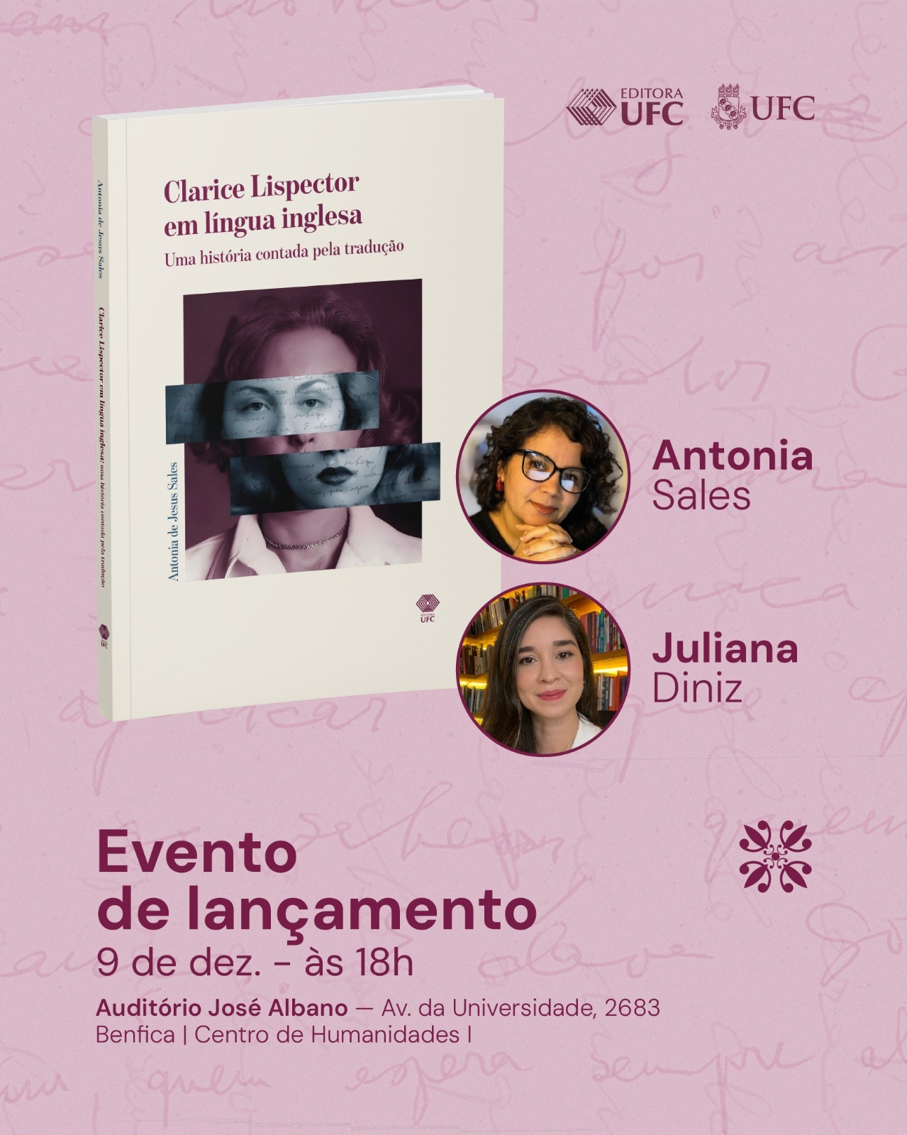 Lançamento do livro Clarice Lispector em língua inglesa, de Antonia Sales, pela Editora UFC